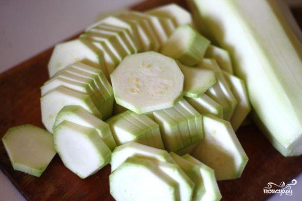 Кабачки очистить от кожуры и нарезать кольцами.