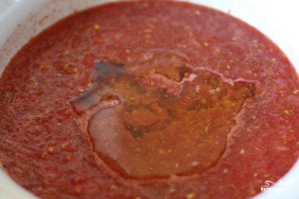 Как приготовить "Кабачки в томате на зиму"Помидоры следует перетереть через сито. Желательно, чтоб не осталось ни кожуры, ни семян. Получившийся томат перелить в кастрюлю и добавить к нему соль, сахар перец. Довести содержимое до кипения и в кипящий томат вылить полстакана растительного масла (можно и меньше).