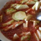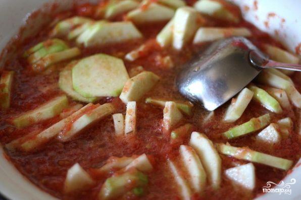 Кольца из кабачков высыпать в кипящий томат и варить все около 20 минут.
